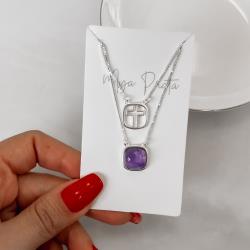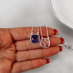 Escapulário cruz e pedra ametista v15 60cm | Mya Prata