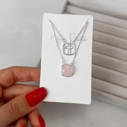 Escapulário cruz e pedra quartzo rosa v15 60cm | Mya Prata
