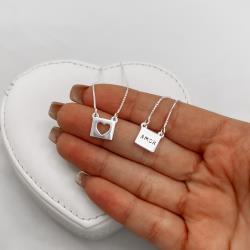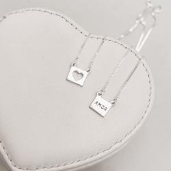 Escapulário medalhas amor e coração vazado v15 60cm | Mya Prata