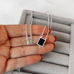 Escapulário placa cruz vazada e zircônia ônix v15 60cm | Mya Prata