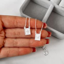 Escapulário medalhas cruz e Espírito Santo cravejados v15 60cm | Mya Prata