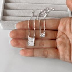Escapulário placa mãe cravejada e zircônia oval v15 60cm | Mya Prata