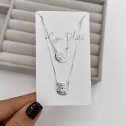 Escapulário medalhas redonda tradicional verso Salmos v15 60cm | Mya Prata