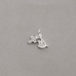 Descrição: Pingente cruz e Espírito Santo cravejados 8mm fabricado(a) em prata