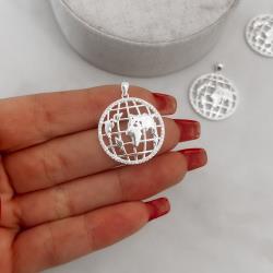 Pingente medalha mundo borda cravejada 22mm | Mya Prata