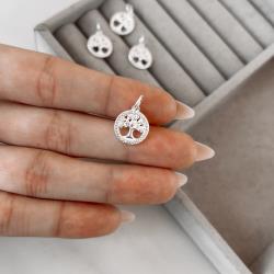 Pingente medalha árvore cravejada 12mm | Mya Prata