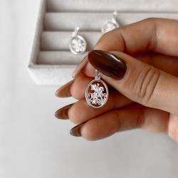 Pingente medalha oval São Jorge 15mm | Mya Prata