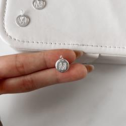 Pingente medalha letra M cravejada 15mm | Mya Prata