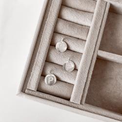 Pingente medalha letra P cravejada 15mm | Mya Prata