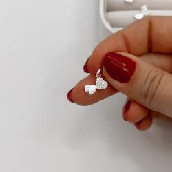 Pingente 2 corações liso e cravejado 11mm | Mya Prata