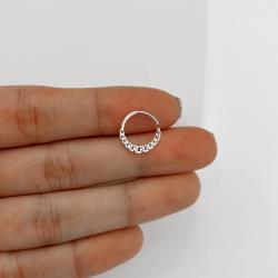 Piercing argola 11mm detalhe elos trançados orelha esquerda | Mya Prata