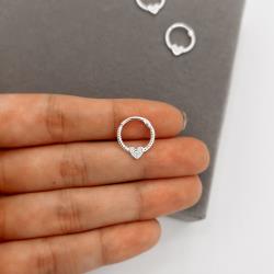 Piercing argola torcida trava com coração cravejado 13mm orelha esquerda | Mya Prata