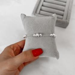 Pulseira entremeio bolas 5 e 7mm corrente cadeado | Mya Prata