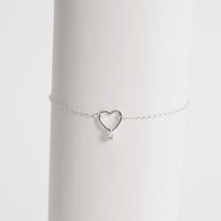 Descrição: Pulseira entremeio coração vazado pingente mini zircônia fabricado(a) em prata