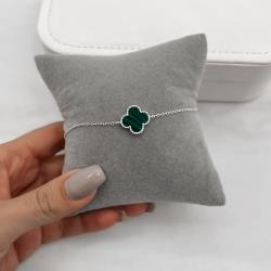 Pulseira entremeio trevo malaquita com bolinhas 14mm | Mya Prata