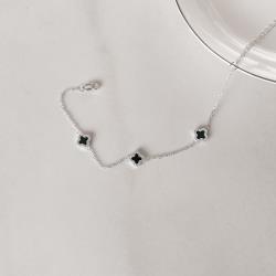 Pulseira entremeios trevos ônix borda cravejada 7mm