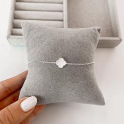 Pulseira entremeio trevo madrepérola 10mm com bolinhas | Mya Prata