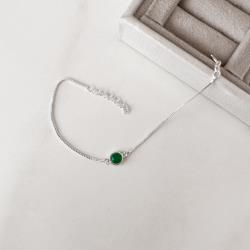 Pulseira entremeio pedra ágata verde 7mm v15 16cm com alongadora | Mya Prata