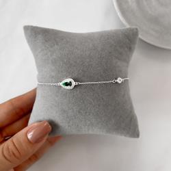 Descrição: Pulseira entremeio zircônia gota esmeralda com cravejado 10mm e zircônia redonda 4mm fabricado(a) em prata