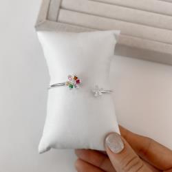 Bracelete 2 flores cravejadas cristal e colorida fio maleável ródio | Mya Prata