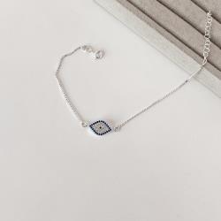 Pulseira entremeio olho grego navete cravejado 14mm v15 16cm com alongadora | Mya Prata