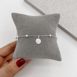 Pulseira entremeio bolas com pingentes cruz, medalha São Bento e Espírito Santo | Mya Prata