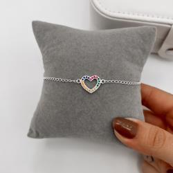 Pulseira entremeio coração vazado cravejado colorido 13mm | Mya Prata