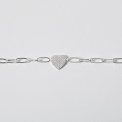 Pulseira entremeio coração cravejado 12mm corrente cartier 16+5cm