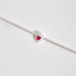 Pulseira Riviera 2.1 zircônia coração rubi com cravejado 16+4cm