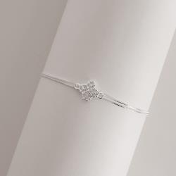 Descrição: Pulseira entremeio trevo cravejado 10mm corrente dupla 17+5cm fabricado(a) em prata