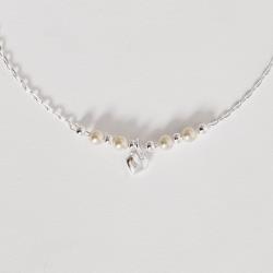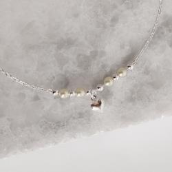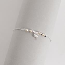 Pulseira entremeio bolas e pérolas com pingente coração 6mm 19cm | Mya Prata