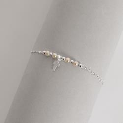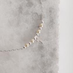 Pulseira entremeio bolas e pérolas com pingente cruz 8mm 19cm | Mya Prata
