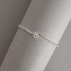 Pulseira Riviera 2mm com círculo vazado cravejado 16+4cm | Mya Prata
