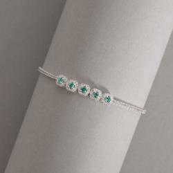 Pulseira Riviera entremeio quadrados cravejados detalhe turmalina 16+4cm | Mya Prata