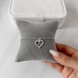 Pulseira pingente coração vazado cravejado 16mm | Mya Prata