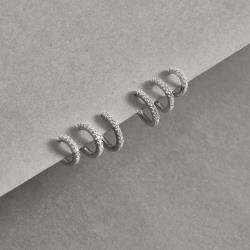 Trio argolas click redonda 9, 10 e 12mm cravejada | Mya Prata