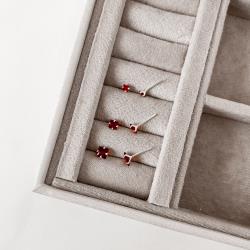 Trio zircônias quadradas 3, 4 e 5mm vermelho | Mya Prata