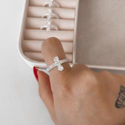 Anel meia aliança detalhe zircônias redonda e gota | Mya Prata
