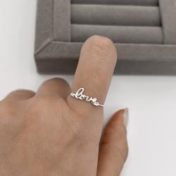 Descrição: Anel escrito love detalhe zircônias fino fabricado(a) em prata