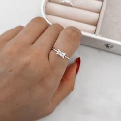 Descrição: Anel solitário zircônia retangular caixa alta fabricado(a) em prata