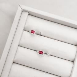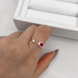 Anel zircônia retangular cereja e coração cravejado regulável P