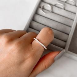Descrição: Anel hexágono detalhe cravejado fabricado(a) em prata