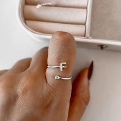 Anel letra F cravejada e zircônia regulável P