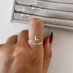 Anel letra L cravejada e zircônia regulável P | Mya Prata
