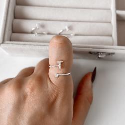 Anel letra T cravejada e zircônia regulável P | Mya Prata