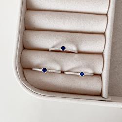 Anel meia aliança com solitário azul 3mm | Mya Prata