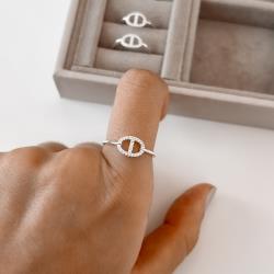 Anel oval vazado cravejado | Mya Prata