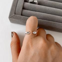 Anel 2 zircônias gota com cravejado lateral regulável P | Mya Prata
