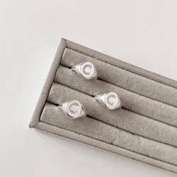 Anel oval letra C cravejada regulável P | Mya Prata