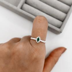 Anel solitário zircônia navete esmeralda com cravejado | Mya Prata